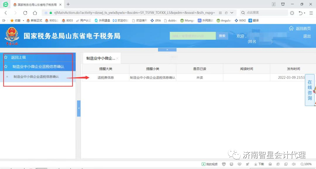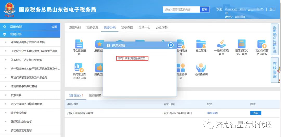 或者通過(guò)登錄后的信息提醒功能,如下圖: