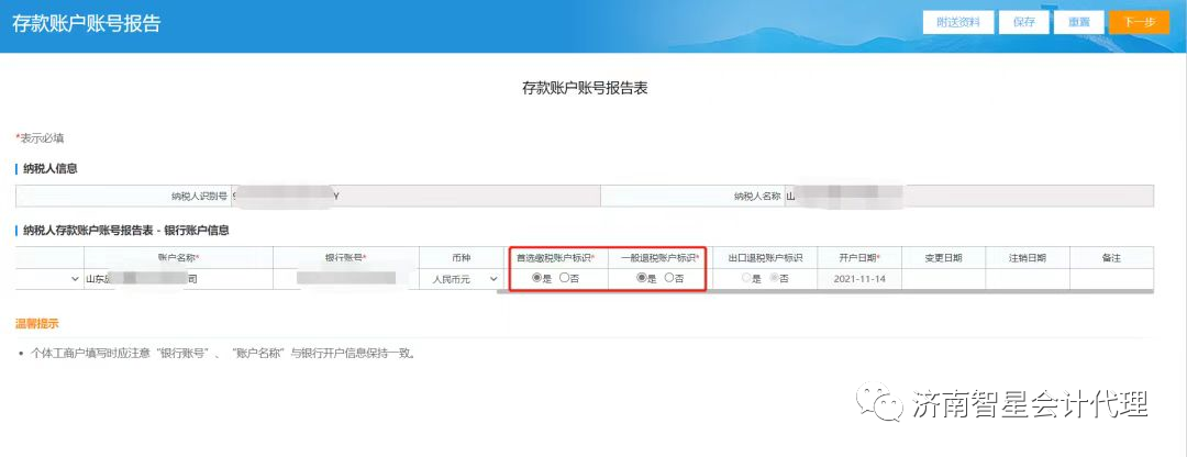 請(qǐng)核實(shí)您的應(yīng)退稅款,選擇您的退稅銀行賬號(hào),請(qǐng)確認(rèn)選擇的退稅銀行賬號(hào)和賬戶(hù)名稱(chēng)務(wù)必正確可用。如退稅(費(fèi))銀行戶(hù)信息為空,可通過(guò)電子稅務(wù)局“我要辦稅”-“綜合信息報(bào)告”-“制度信息報(bào)告”-“納稅人存款賬戶(hù)賬號(hào)報(bào)告辦理”模塊,錄入您的退稅銀行賬號(hào),注意“首選繳稅賬戶(hù)標(biāo)識(shí)”及“一般退稅賬戶(hù)標(biāo)識(shí)”項(xiàng)務(wù)必選擇“是”。如圖: