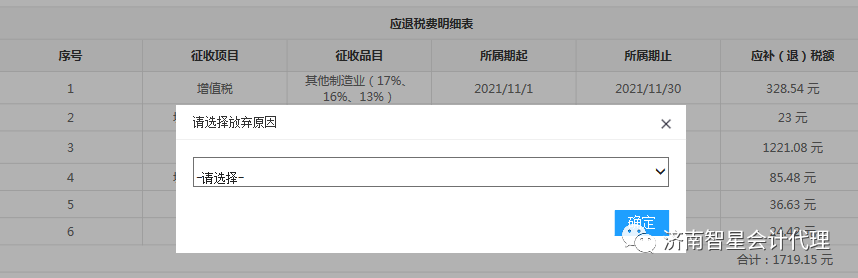 如果放棄退稅,點(diǎn)擊【放棄退稅(費(fèi))】按鈕,選擇放棄原因,如下圖: