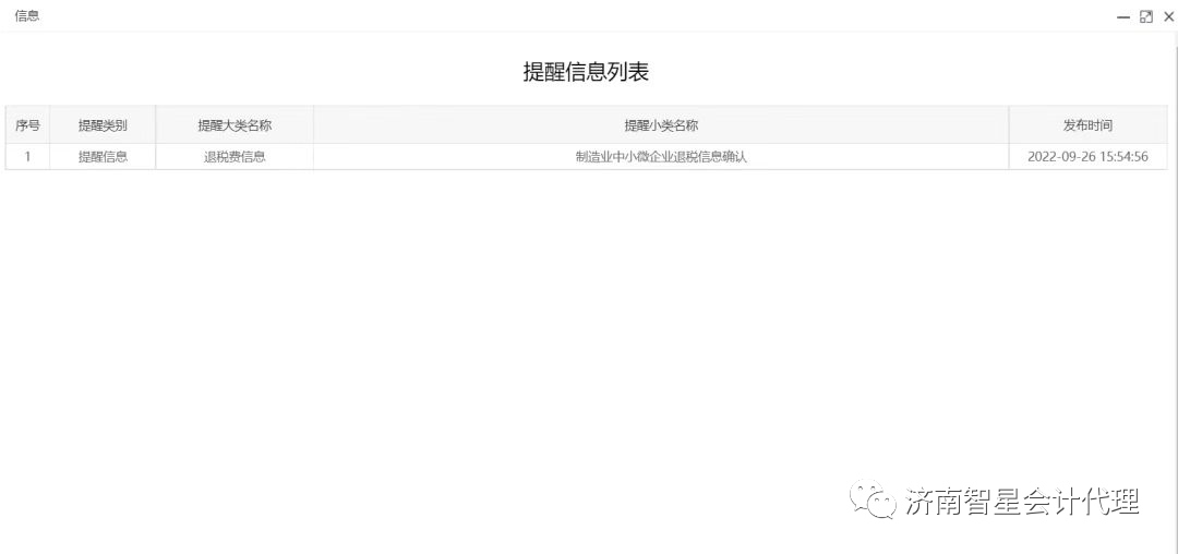 點(diǎn)擊提醒信息,打開(kāi)“制造業(yè)中小微企業(yè)退稅信息確認(rèn)”列表,如圖: